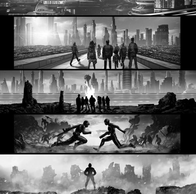 Explore a captivating, futuristic, sci-fi dystopian universe through our thrilling book and graphic novel series.